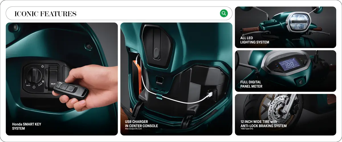 | Sistem Pengereman | Anti-Lock Braking System (ABS) & Combi Brake System (CBS) |